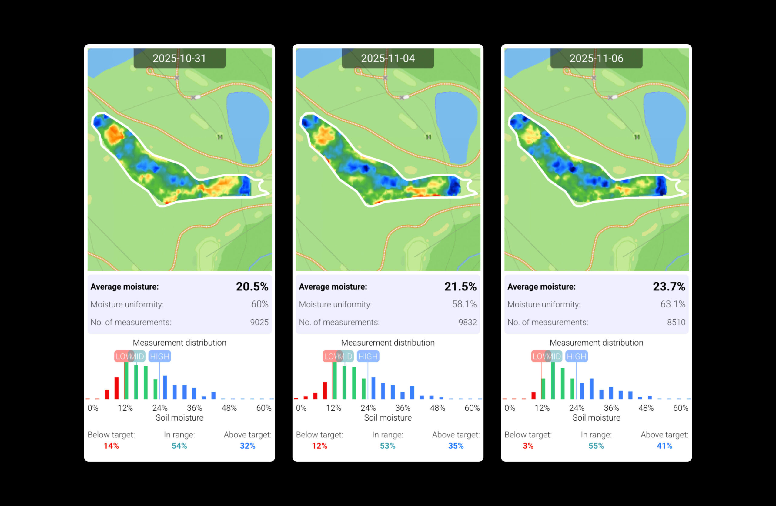 By capturing subsurface moisture data, turfRad helps identify turf stress and uneven moisture patterns early, well before visible symptoms appear. The result is more precise irrigation control, improved water efficiency, and consistently healthier turf compared to traditional surface-based sensing methods.